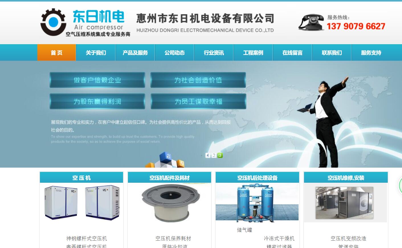 惠州市東日機(jī)電設(shè)備有限公司是一家從事空氣壓縮設(shè)備.工程設(shè)計(jì)安裝.環(huán)保節(jié)能改造的專業(yè)集成服務(wù)商。公司是上海神鋼壓縮機(jī)惠州特約經(jīng)銷商.浙江鑫磊空壓機(jī)惠州代理商。公司為用戶提供各式空壓機(jī).干燥機(jī).儲(chǔ)氣罐等配套設(shè)備。