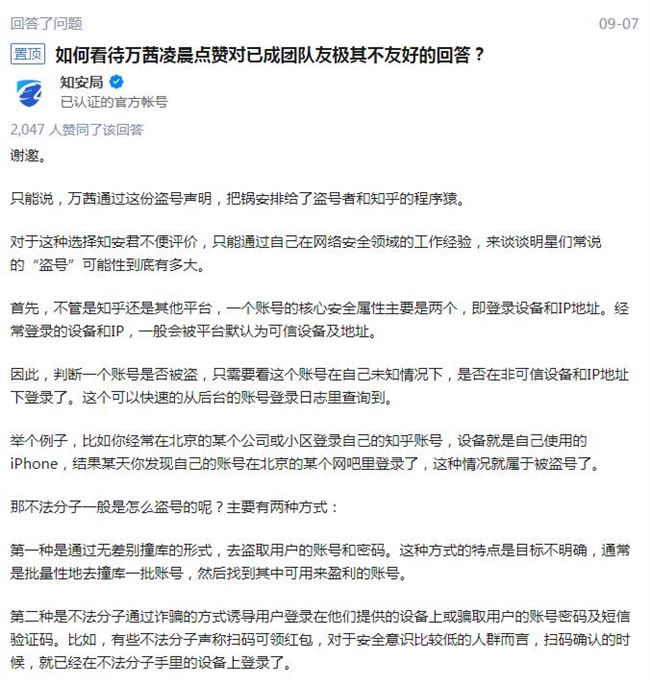 隨后,知乎方面表示,是因?yàn)槿f茜的 163 郵箱被盜導(dǎo)致知乎賬號(hào)被盜,知乎賬號(hào)被盜號(hào)概率較低,知乎賬號(hào)安全值得信賴。