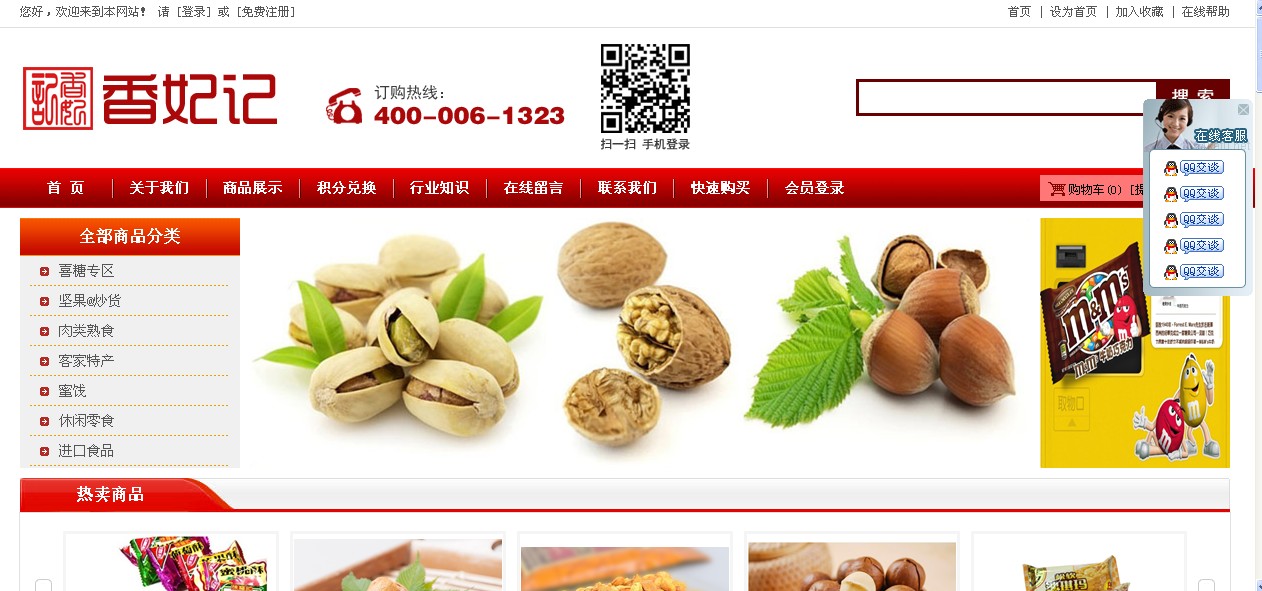 香妃記食品公司是一家以實(shí)體連鎖店、電子商務(wù)為一體,專業(yè)經(jīng)營(yíng)食品的公司。從業(yè)8年來我們不斷追求進(jìn)步發(fā)展。我公司旗下代理三十余個(gè)品牌食品,徐福記糕點(diǎn)糖果系列、旺旺小食品系列、天虹堅(jiān)果系列、老壇子肉食系列等等一批美味優(yōu)質(zhì)的產(chǎn)品。同時(shí)我們的產(chǎn)品定期更新不斷有新的美味食品更好滿足廣大消費(fèi)者的需求。我公司實(shí)體店受到廣大消費(fèi)者的一致好評(píng),電視臺(tái)曾多次對(duì)我公司實(shí)體店進(jìn)行專題采訪報(bào)道!